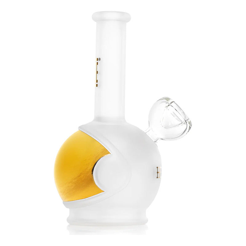El bong Space Fleet te invita a despegar con su original diseño en forma de casco de astronauta, acabado en vidrio esmerilado y una visera dorada brillante que roba miradas. Fabricado en vidrio resistente de 5 mm, cuenta con tubo difusor, junta empotrada de 14 mm a 45° y un tamaño compacto de 15 cm de alto, ofreciendo una experiencia suave y estilizada. Una pieza llamativa y funcional, ideal para quienes buscan algo verdaderamente fuera de este mundo. Bienvenido a Mundo Green, tu tienda confiable.